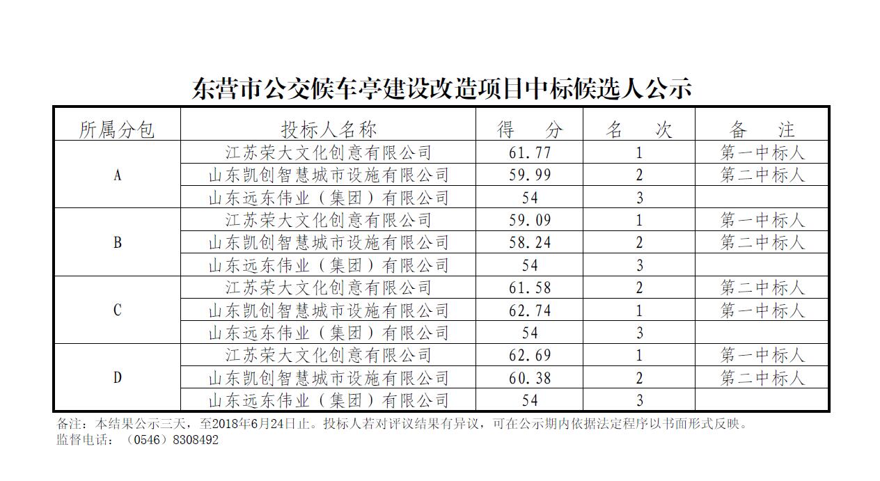 東營市公交候車亭建設(shè)改造項目中標(biāo)候選人公示