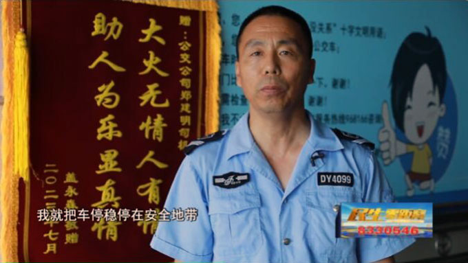 近日,東營市公交集團(tuán)汽車四隊駕駛員鄭建明駕駛107路公交車行駛到北二路化工學(xué)院附近時,突然發(fā)現(xiàn)前方路邊停著一輛著火的小貨車,于是迅速停車幫助滅火。事后,小貨車車主為表示感謝特意制作了錦旗送到車隊,此事在東營電視臺播出。