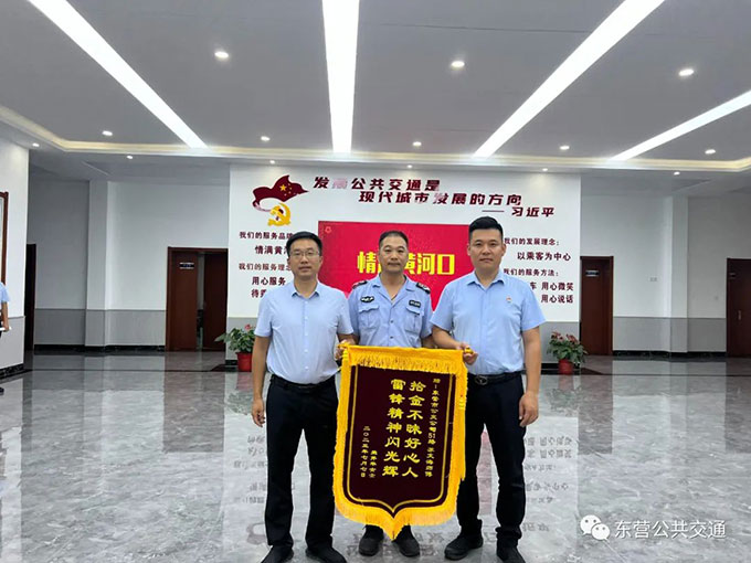 在7月10日下午,杜先生帶著“拾金不昧好心人,雷鋒精神閃光輝”的錦旗來(lái)到汽車一隊(duì)感謝車隊(duì)51路蘇文海師傅的拾金不昧。