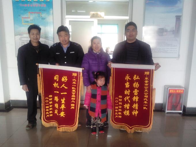 1月27日上午,一位楊先生攜全家激動(dòng)的來到市公交公司汽車一隊(duì),雙手捧著兩面錦旗向駕駛員隋崗和車隊(duì)表示感謝。