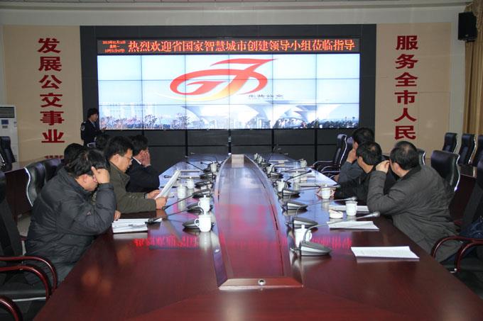 我市申報(bào)的國(guó)家智慧城市規(guī)劃綱要、實(shí)施方案等申報(bào)材料已經(jīng)通過(guò)初審,此次現(xiàn)場(chǎng)考察主要是考察我市三網(wǎng)覆蓋情況、數(shù)字化城市建設(shè)情況、智能交通建設(shè)情況、平安城市建設(shè)情況以及云計(jì)算中心建設(shè)情況??疾旖M來(lái)我公司主要是考察公交智能化建設(shè)情況,聽(tīng)取了工作人員的現(xiàn)場(chǎng)講解演示及智能化公交建設(shè)情況匯報(bào)。