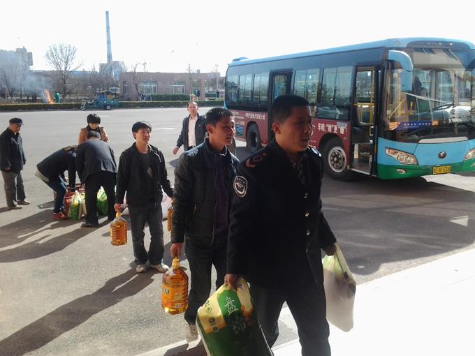 近日,在雷鋒月期間,市公交公司汽車(chē)四隊(duì)148路、150路文明示范線路部分駕駛員,用他們?cè)诠鹃_(kāi)展的“文明示范線路”考評(píng)中獲得的2000元獎(jiǎng)金購(gòu)買(mǎi)了面粉、大米、食用油、雞蛋等生活必須品,代表車(chē)隊(duì)全體員工前往東營(yíng)區(qū)辛店街道敬老幸福園,為年邁的老人送上自己的愛(ài)心。