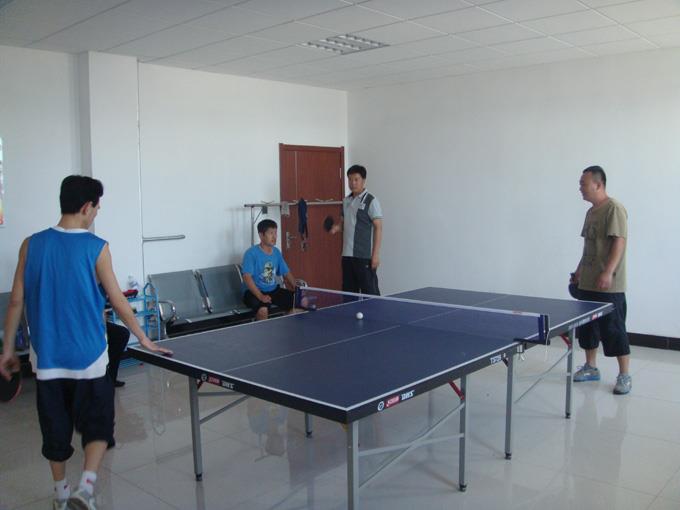 乒乓球作為中國的國球,普及率極高,雖然大家平時沒有經(jīng)過專門的訓(xùn)練,但是都能信手拈來,所以比賽也異常激烈。直拍、橫拍、扣球、旋轉(zhuǎn)球、弧線球等都得到了一一體現(xiàn),比賽中不時傳出熱烈的喝彩聲,興奮的“好球”聲不斷。