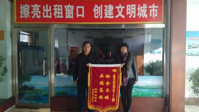 當(dāng)天下午市公交公司出租汽車營運中心駕駛員毛潤章將撿到的手提袋主動交給運營中心管理人員,后經(jīng)運營中心工作人員與乘客取得聯(lián)系,將出租車司機毛潤章?lián)斓降氖痔岽餁w原主。事后乘客王毅送來一面錦旗對出租車駕駛員毛潤章表示感謝。
