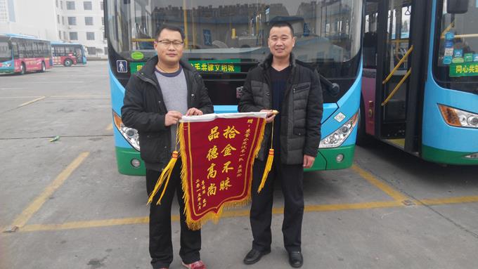 3月8日,萊商銀行的李先生拿著一面寫(xiě)有“拾金不昧、品德高尚”的錦旗來(lái)到市公交公司汽車(chē)一隊(duì),感謝3路駕駛員王勝松師傅拾金不昧的高尚品德。據(jù)車(chē)隊(duì)了解得知,2月13日晚上19時(shí),李先生乘坐王勝松師傅駕駛的3路車(chē)來(lái)到東城,下車(chē)后發(fā)現(xiàn)裝有1600元現(xiàn)金和多張銀行卡的錢(qián)包忘在公交車(chē)上。次日,李先生抱著試試看的想法來(lái)到市公交公司汽車(chē)一隊(duì),詢問(wèn)得知駕駛員王勝松師傅已將裝有1600元現(xiàn)金的錢(qián)包上繳車(chē)隊(duì),車(chē)隊(duì)工作人員也在想辦法聯(lián)系失主。