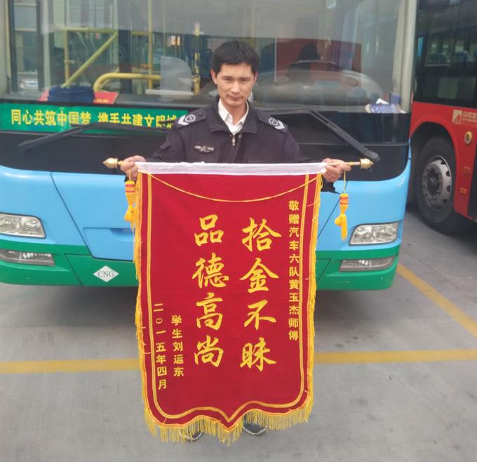 4月8日下午,一位女士來到市公交公司汽車六隊,通過調(diào)度室找到了117路司機師傅黃玉杰,幾句道謝之后,將已準備好的錦旗送到了黃玉杰師傅手里,感謝其拾金不昧的高尚品德。據(jù)車隊了解,4月2日的早上,黃玉杰師傅駕駛的117路公交車在到達墾利信譽樓站點時,發(fā)現(xiàn)后排座椅上有一書包,他上前及時的收了起來,回到車隊后,便立馬交到了車隊調(diào)度。失主也在第一時間聯(lián)系到了車隊,在詢問情況后得知,書包里面有一臺新購買的價值3000多元的筆記本電腦和一些重要的學習書籍。