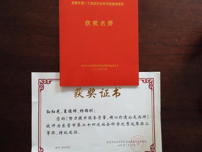 近日,東營市第二十四次社會科學(xué)優(yōu)秀成果獎評選結(jié)果揭曉,由市公交公司組織申報的《努力提升服務(wù)質(zhì)量,精心打造公交品牌》論文喜獲東營市第二十四次社會科學(xué)優(yōu)秀成果獎三等獎。