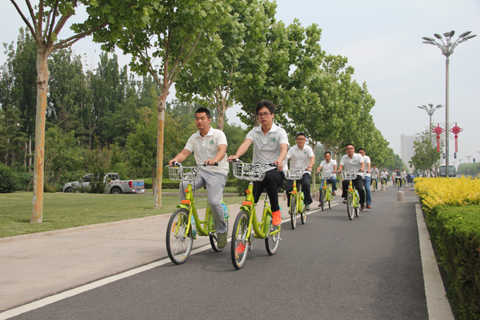 上午九時(shí),來(lái)自市公交公司和環(huán)保局的70余名志愿者匯集在黃河影劇院停車場(chǎng),統(tǒng)一騎行公共自行車,身著統(tǒng)一環(huán)保T恤,由黃河影劇院出發(fā),行經(jīng)府前大街—?jiǎng)倮蠼帧獮H河路—東三路等東城區(qū)主要繁華路段,開展了浩浩蕩蕩的綠色騎行宣傳活動(dòng)。