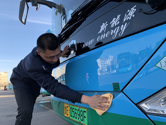 臘月二十三是農(nóng)歷的小年,天氣晴好。東營(yíng)市公交公司汽車一隊(duì)的停車場(chǎng)里,多名職工和保潔員在清潔公交車輛衛(wèi)生,干干凈凈迎接春節(jié)。