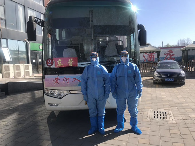 3月17日晚,汽車二隊接到公司指令,迅速動員調(diào)集10名駕駛員,5臺大巴車組成轉(zhuǎn)運隊伍,配合市防疫指揮部駐北京工作專班執(zhí)行入境人員回東營市區(qū)的轉(zhuǎn)運任務(wù)。接到指令后,汽車二隊迅速定人定車,在短短30分鐘內(nèi)完成人員和車輛的調(diào)集。在市防疫指揮部與公安、衛(wèi)生等部門工作人員共同參加完簡短又嚴肅的部署動員會后,全體參運駕駛員不顧安危,道別家人,次日便身穿防護服,全副武裝,奔赴防疫前線,成為了“抗疫逆行者”。