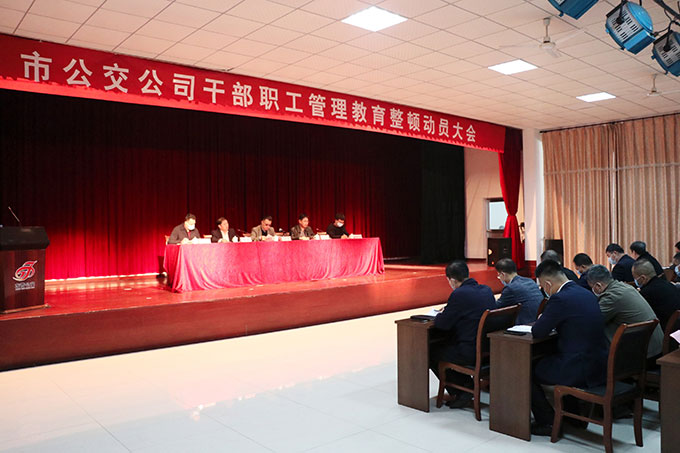 2021年11月5日上午9時,市公交公司干部職工管理教育整頓動員大會在南會議室召開,市交通運輸局黨組成員、市交通運輸事業(yè)服務(wù)中心主任王杰出席會議,公司黨委書記趙龍同志主持動員會。