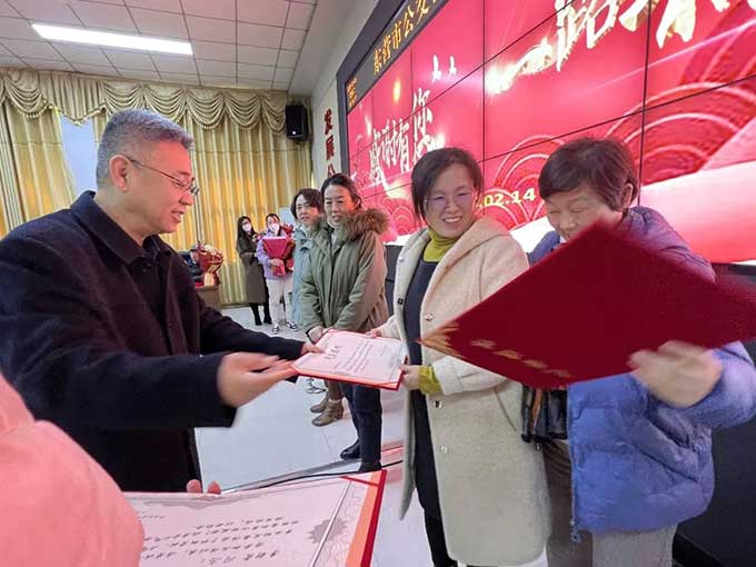 最后,趙龍同志為老同志逐一頒發(fā)榮退證書,并獻(xiàn)上鮮花。儀式過后,各位領(lǐng)導(dǎo)和參加儀式人員集體合影留念。