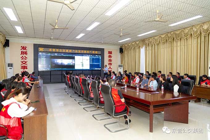 啟動(dòng)儀式結(jié)束后,大家統(tǒng)一乘公交車來到市公交集團(tuán),參加?xùn)|營(yíng)市“公交開放日”活動(dòng),現(xiàn)場(chǎng)觀摩了市公交智能調(diào)度指揮中心、客服中心以及汽車一隊(duì),詳細(xì)了解了智慧公交系統(tǒng)建設(shè)、公交業(yè)務(wù)辦理、車隊(duì)日常運(yùn)營(yíng)等情況,真正“零距離”“面對(duì)面”接觸公交、感受公交。