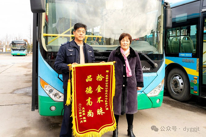 2024年1月19日,失主史女士及家人將一面繡著“拾金不昧 品德高尚”的錦旗送至市公交集團(tuán)汽車七隊(duì)李廣濱師傅手中,感謝李廣濱師傅歸還遺失手提包的感人事跡。