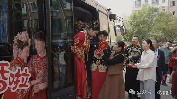 新娘郭琪是個(gè)“零零后”,她的家鄉(xiāng)在安徽滁州,她和新郎陳世杰雖是大學(xué)校友,但小他兩屆,是畢業(yè)后的機(jī)緣巧合才在安徽認(rèn)識(shí)并相戀的。如今兩人修成正果,她便跟隨丈夫來到東營舉行婚禮。決定用公交車接親是新郎的母親高海云提議的,她退休前就職于市公交集團(tuán),新郎從小到大沒少坐公交車,可以說就是伴隨著公交發(fā)展史長大的。這一提議得到了新娘的贊同,她認(rèn)為傳統(tǒng)的迎親車隊(duì)千篇一律,而且結(jié)婚花銷過于昂貴,“咱沒必要那么鋪張浪費(fèi),去租那些豪華車隊(duì),”郭琪說,“最主要的是,我感覺這樣可以跟陳世杰小時(shí)候的回憶有一種呼應(yīng),是非常有價(jià)值的一件事?!?/p>