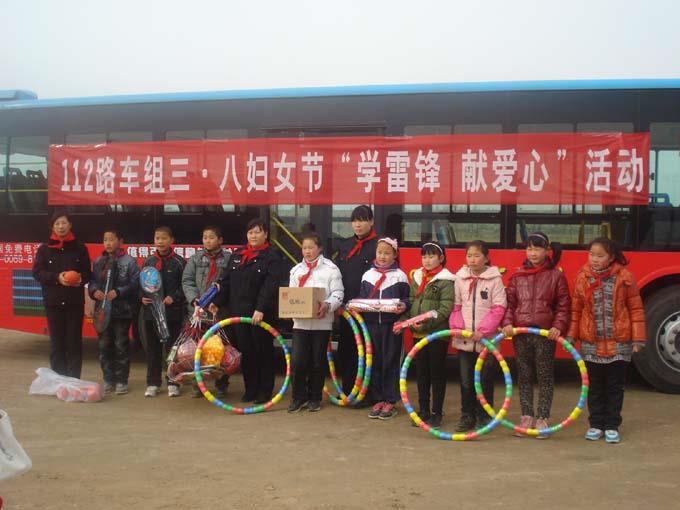 當(dāng)前,“學(xué)習(xí)雷鋒同志,弘揚(yáng)雷鋒精神”活動(dòng)正在全國(guó)上下如火如荼的進(jìn)行。三、八節(jié)前夕, 112路的姐妹們就謀劃著用本線路在公司“文明服務(wù)示范線路”評(píng)比中獲得的獎(jiǎng)金,在三八婦女節(jié)當(dāng)天做點(diǎn)有意義的事,以“關(guān)注社會(huì)、奉獻(xiàn)愛(ài)心”的方式歡度自己的節(jié)日。最后一致商議決定,對(duì)大杜小學(xué)進(jìn)行捐助。