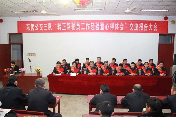 2012年3月28日晚上,市公交公司汽車三隊大會議室內(nèi)燈火通明,不時響起陣陣熱烈掌聲,轉(zhuǎn)正駕駛員“工作經(jīng)驗暨心得體會”交流報告大會正在如火如荼的進(jìn)行。十七名已轉(zhuǎn)正駕駛員肩披綬帶、胸掛紅花、正襟危坐在主席臺上,臉上洋溢著無比自豪卻又略顯拘謹(jǐn)和羞澀。轉(zhuǎn)正的五名代表先后為車隊全體固定期限合同制駕駛員做了工作經(jīng)驗及心得體會報告。