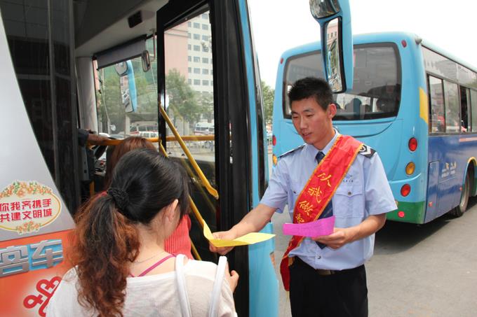 為了貫徹落實(shí)市委、市政府建設(shè)生態(tài)文明典范城市總體要求,深入推進(jìn)市局“五城聯(lián)動(dòng)”統(tǒng)一集中行動(dòng),確保各項(xiàng)任務(wù)指標(biāo)的順利實(shí)現(xiàn),市公交公司于5月11日上午在我市東西城以及八分場(chǎng)共7處主要站點(diǎn)開(kāi)展了“文明乘車,從我做起”文明勸導(dǎo)活動(dòng)。