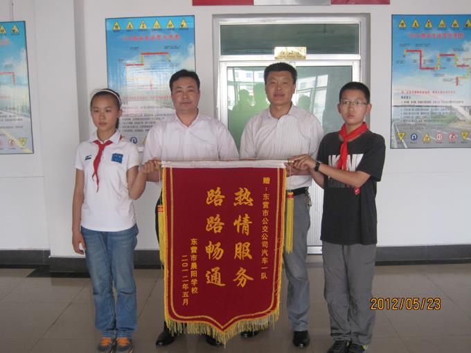 5月23日上午,市晨陽(yáng)學(xué)校師生三人拿著一面寫有“熱情服務(wù)、路路暢通”的錦旗來(lái)到市公交公司汽車一隊(duì),感謝車隊(duì)在5月17至18日為期兩天的旅游包車中,為晨陽(yáng)學(xué)校兩千多名師生提供的熱情、周到、優(yōu)質(zhì)的服務(wù)。對(duì)近幾年公交服務(wù)質(zhì)量的不斷提升表示稱贊,并向公交廣大干部職工表達(dá)深深的敬意。