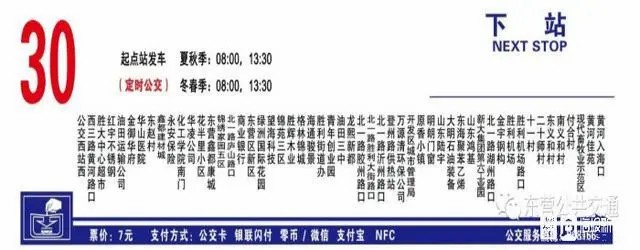 30路公交車路線:公交西站西 至 黃河入???,發(fā)車時間:08:00、13:30(夏秋季)08:00、13:30(冬春季)。